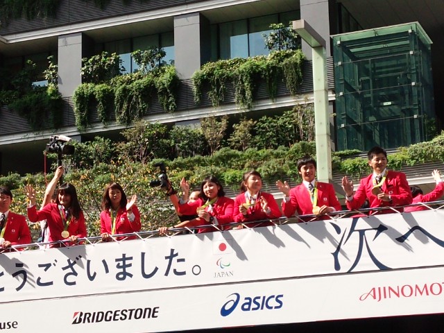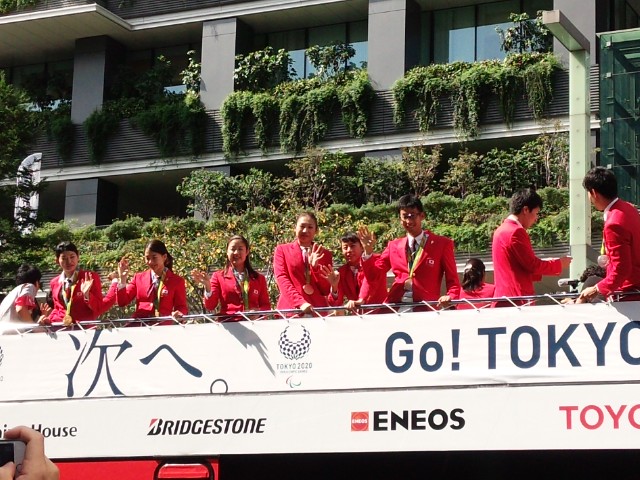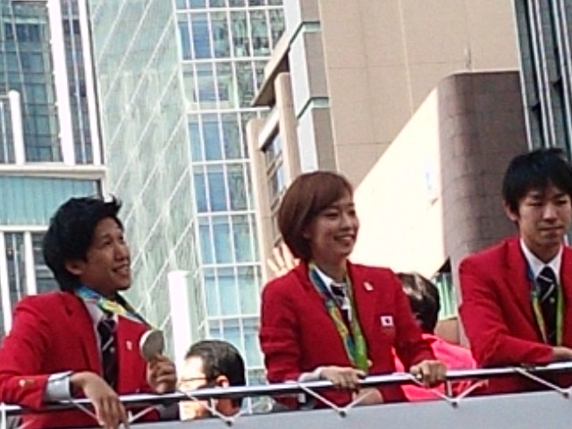 リオ五輪メダリストの凱旋パレード オリパラのメダリストの凱旋パレードを観てきました。 場所は京橋の交差点で待機です。 意外に前の方で観る事ができましたので、その様子を紹介します。 女子レスリングの選手が見えます。 こちらは、バドミントン選手 卓球の石川佳純選手・・・かわいいですね! 皆さん、晴れやかで素敵な笑顔でした。