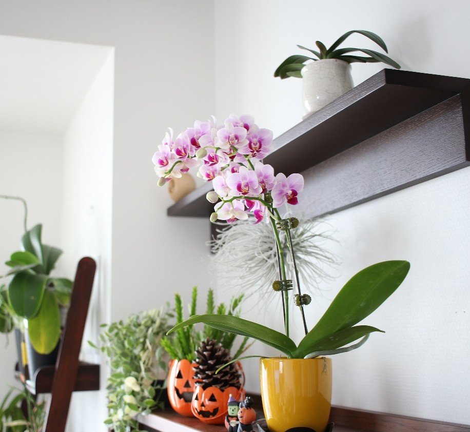 オレンジのポットに入っていたので、さっそくハロウィン雑貨と並べてみました。
