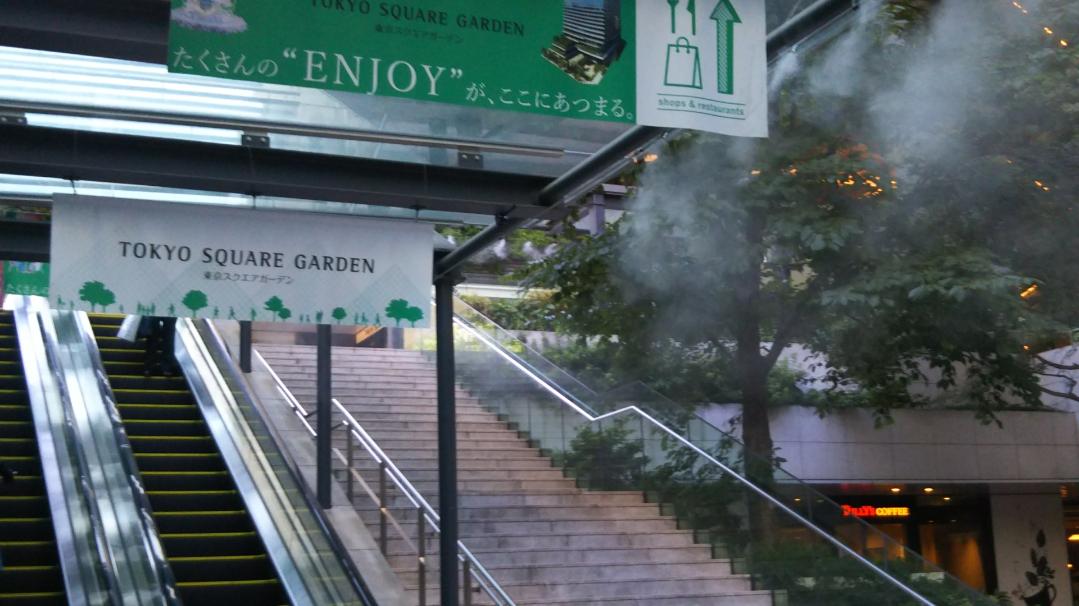 連日のように昼間は外に出るのもためらうほどの猛暑ですが、わが東信商事の最寄り駅、東京メトロ銀座線・京橋駅とそこに直結する東京スクエアガーデンとの間(地下1階~地上1階)のエスカレーター、階段付近にミストが登場しました。うだるような暑さの中、一服の清涼剤となっています。