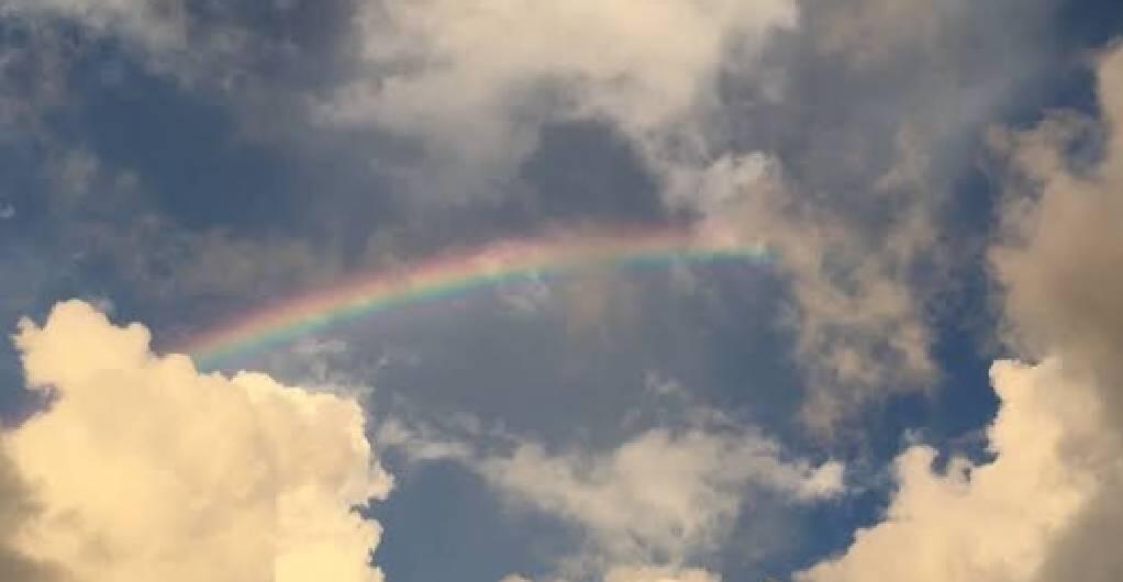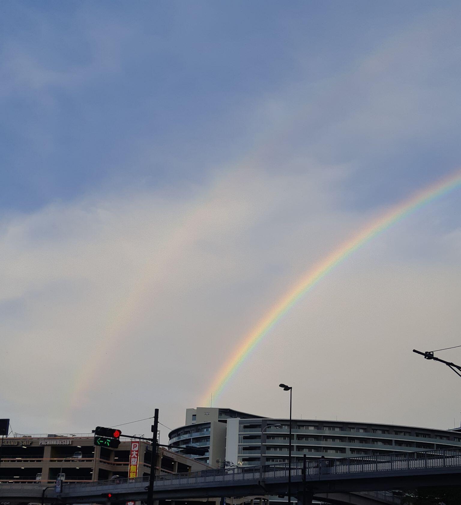 珍しい二重の虹、雲いっぱいの虹の風景・・