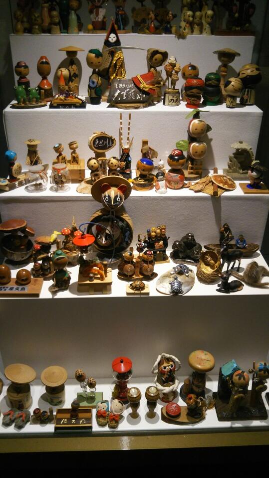 東信商事の最寄り駅、東京メトロ銀座線・京橋駅直結の商業施設「京橋エドグラン」地下1階通路では、現在、テレビ東京「開運!なんでも鑑定団」の鑑定士としても有名な北原照久・株式会社トーイズ代表取締役所蔵の「こけしとお土産」展が開催されています。(4月23日まで)
