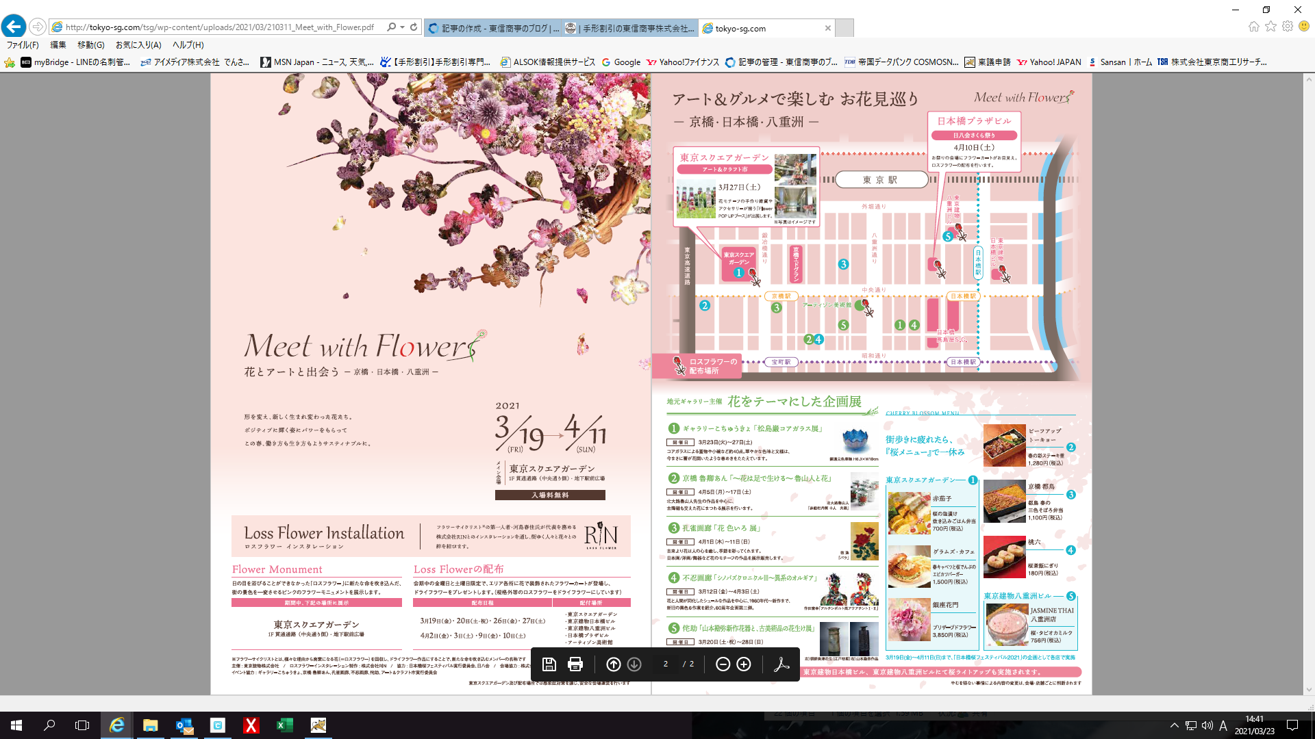 その東京メトロ銀座線・京橋駅直結の商業施設「東京スクエアガーデン」脇の早咲きの河津桜が見頃を迎えています。東京では今年のソメイヨシノの開花が今月中旬(17日頃?)に予想されますが、この時期は河津桜を見ながら東信商事へお越しいただくのはいかがでしょうか。