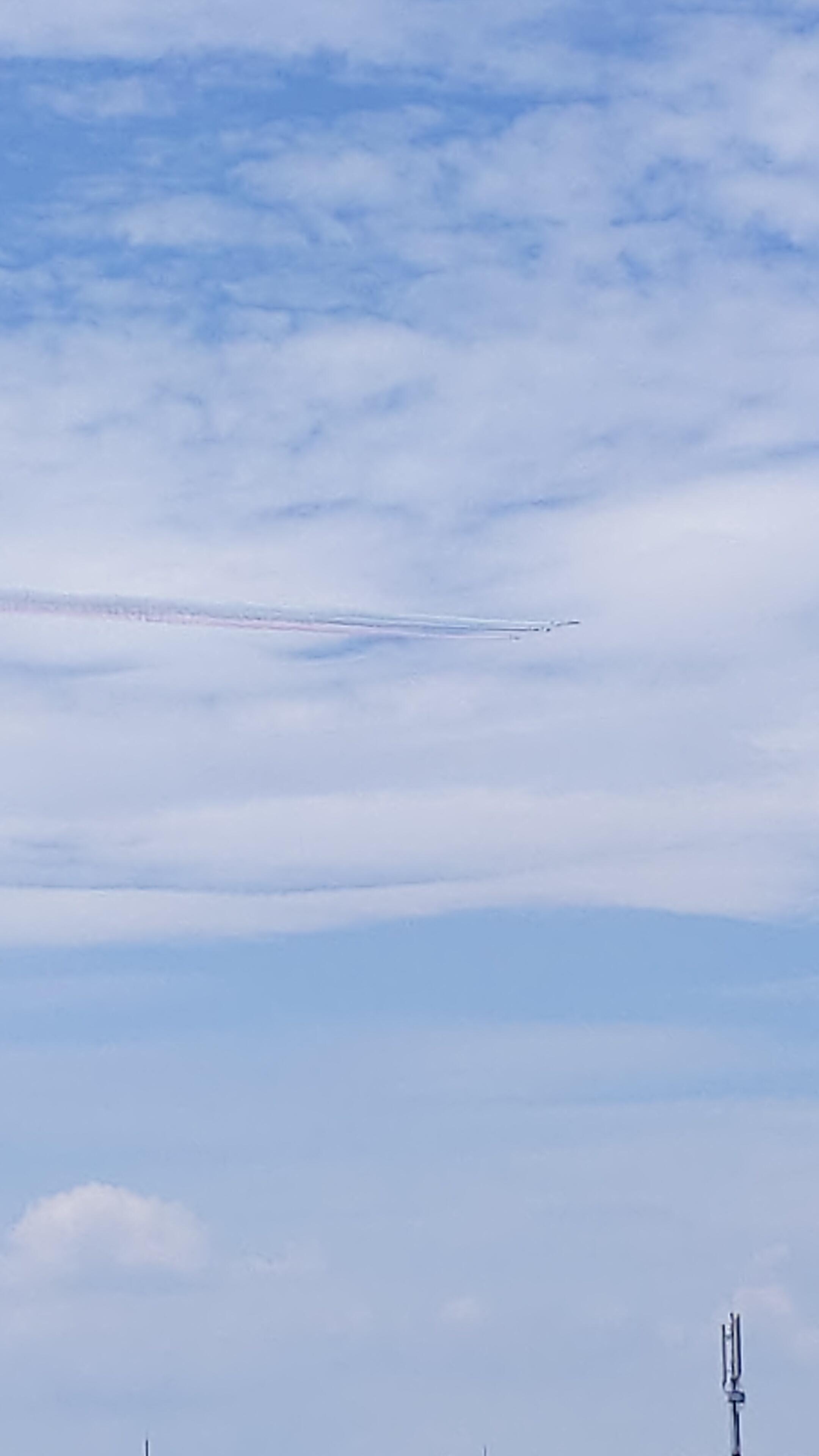 開会式が行われる前のブルーインパルス!東京に住んでいる我が家から・・