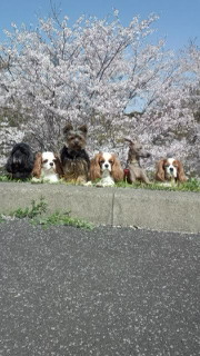 千葉県匝瑳市にある、天神山公園で桜をバックにしたワンコ集合写真です。
