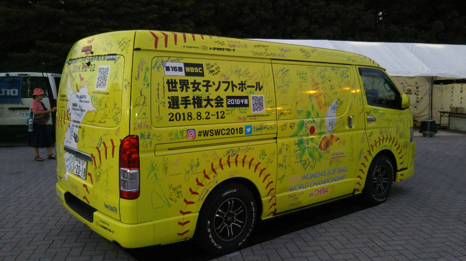 球場入口では、今大会のイベントカーがお出迎え。各国代表選手のサイン入りです。